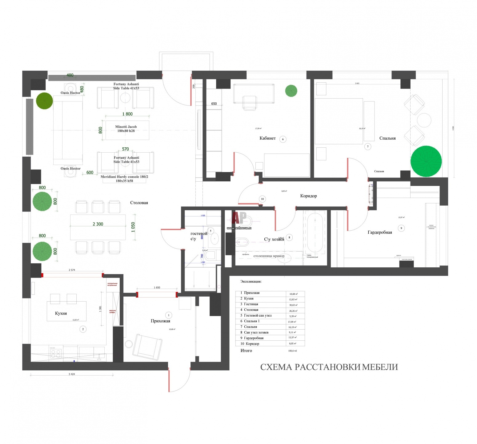 План угловой квартиры в стеклянной современной высотке с панорамными окнами. Общая площадь – 150 кв. м.