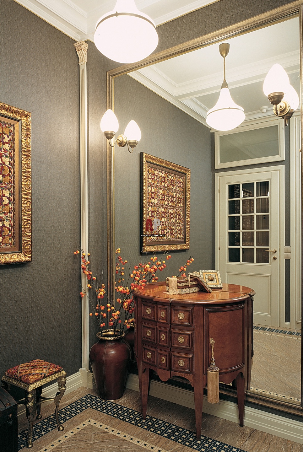 Прихожая в стиле неоклассика. На полу – мозаика Sicis, поставщик BARS RED. Консольный столик, Angelo Cappellini.