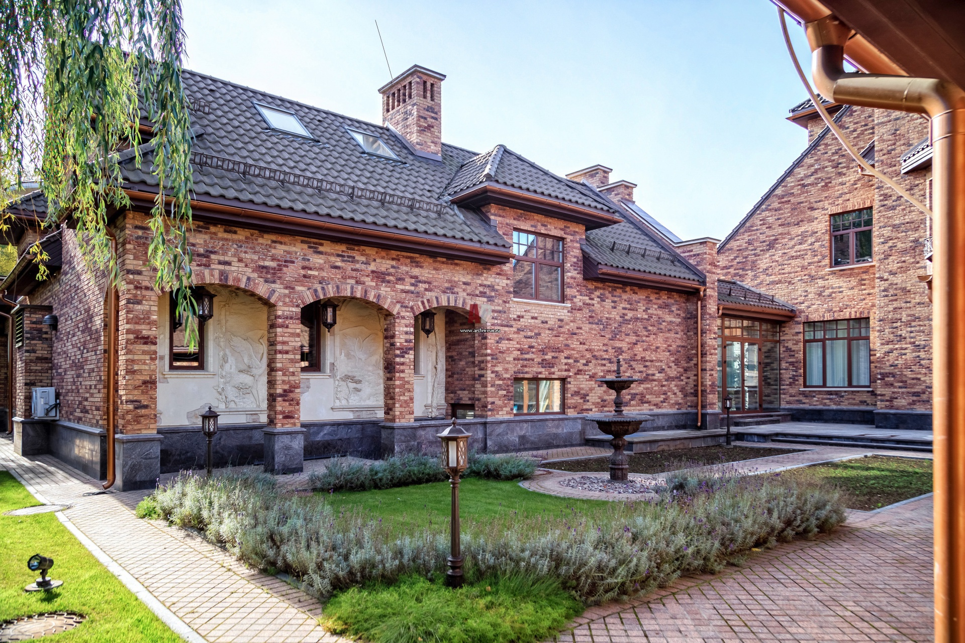 Главный дом имеет выразительную архитектуру с галереями и уютными внутренними дворами, засаженными лавандой. Гипсовые барельефы с журавлями украшают и проходную уличную галерею, сообщая облику дома легкость.