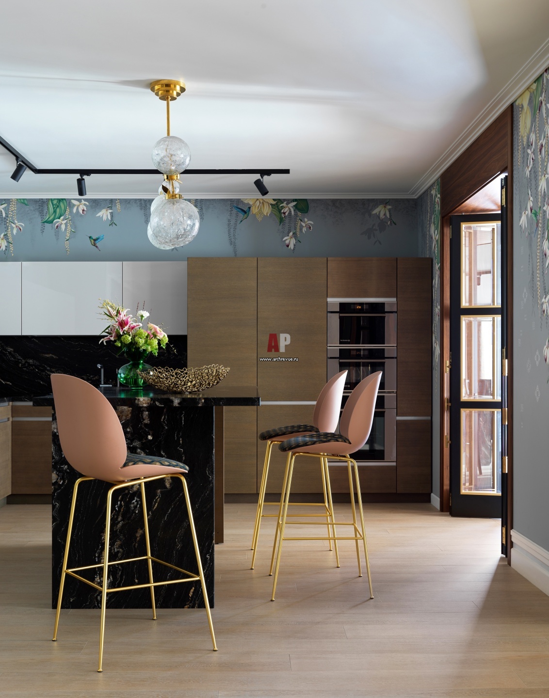 Кухонная мебель Leicht осталась от прежних владельцев. Она была частично пересобрана, фасады и некоторые элементы доделаны. Барные стулья, Gubi