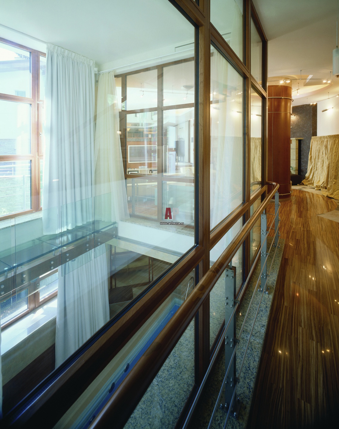 На образ дома эпохи джаза работает каждая деталь, в том числе и панорамные окна в деревянном переплете, поставщик «Европейская коллекция».