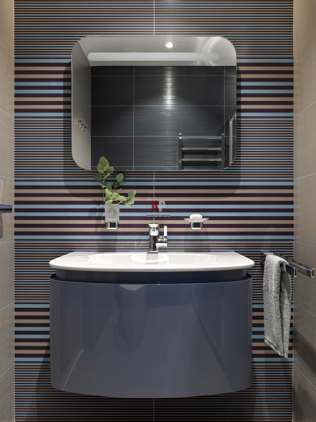Интерьер детского санузла с рисунком плитки в стиле опт-арт. Сантехника, Ideal Standard. Керамогранит, FAP Ceramiche.