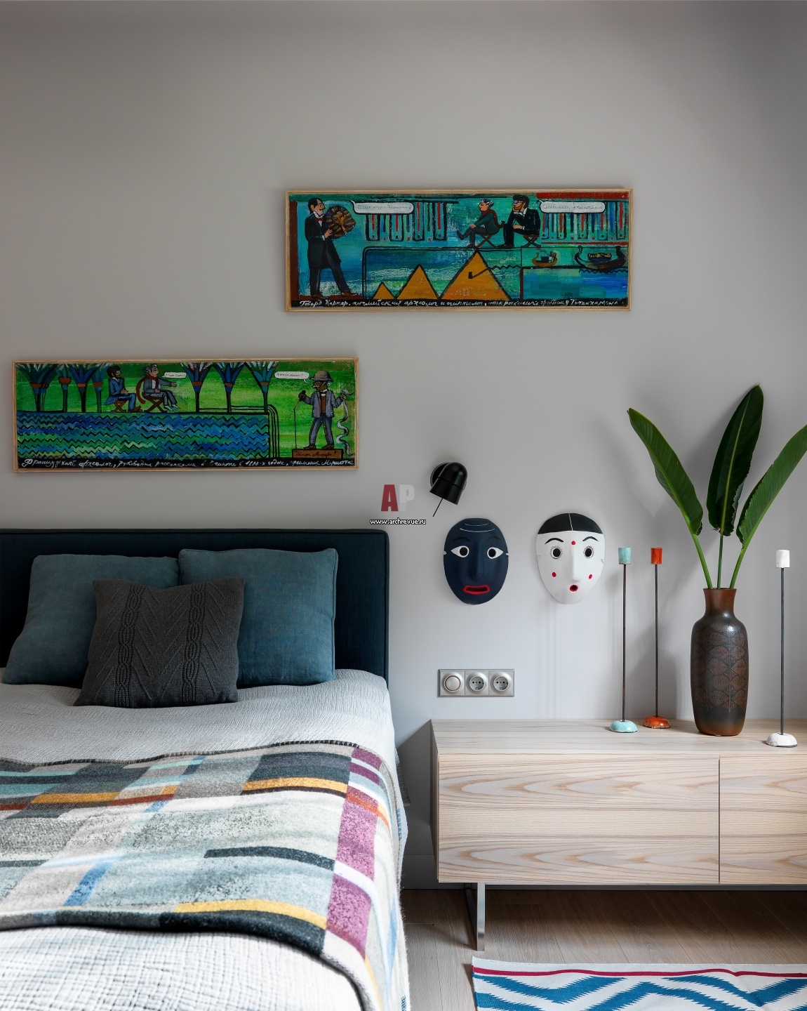 Дом в Барселоне для большой семьи. Интерьер одной из детских комнат. Рядом с кроватью – маски, Hay.