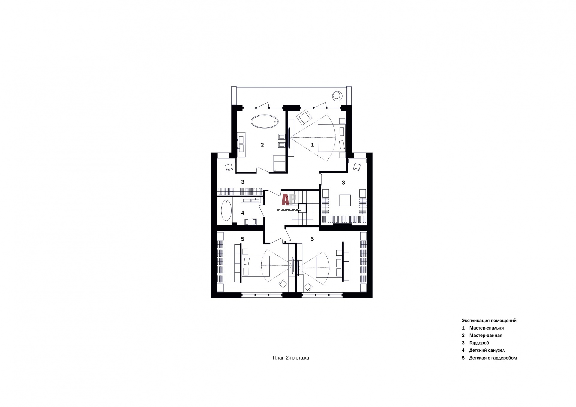 План второго этажа двухэтажного дома на Волге. Общая площадь – 270 кв. м.