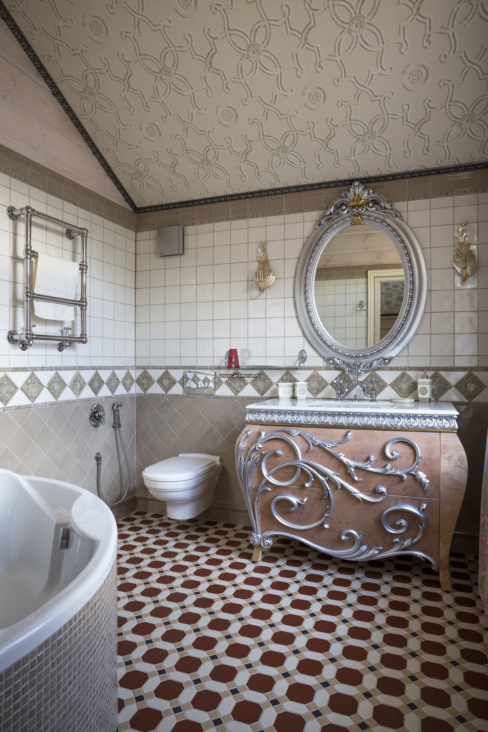 Фото интерьера санузла деревянного дома в стиле неоклассика