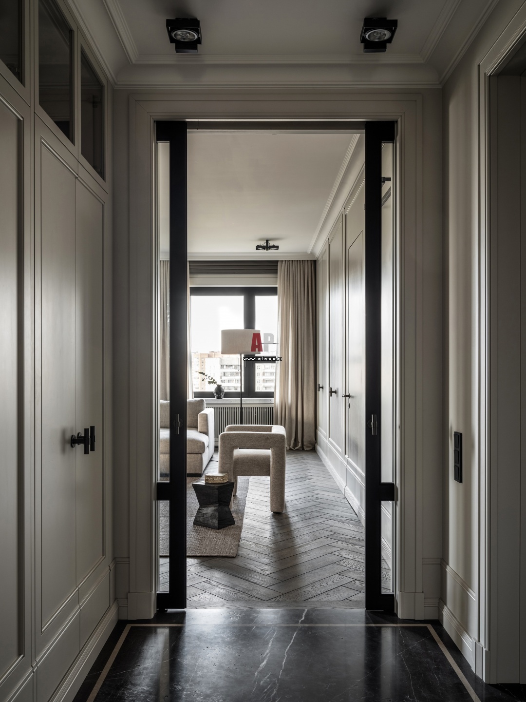 Все проходные помещения в квартире функциональны в них оборудованы встроенные системы хранения. Дверные и мебельные ручки, Formani, поставщик EMPORIO.ru