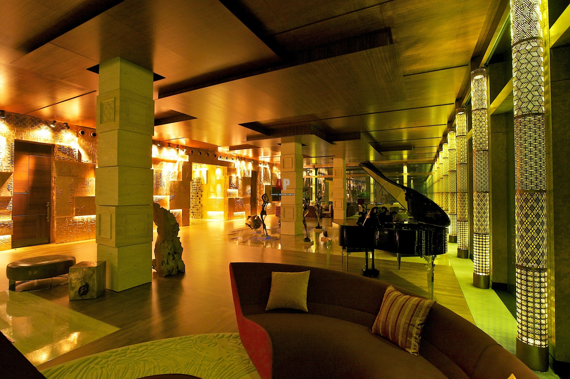 Интерьер гостиной. Поскольку объем следовало решить в одном уровне, без перепадов высот, подиумов, то архитекторы, чтобы организовать пространство и избежать сходства с лобби отеля, придумали яркие ходы: разбили гостиную на несколько функциональных зон, построили декоративный «сухой» фонтан, бар, место для кальяна, камин.
