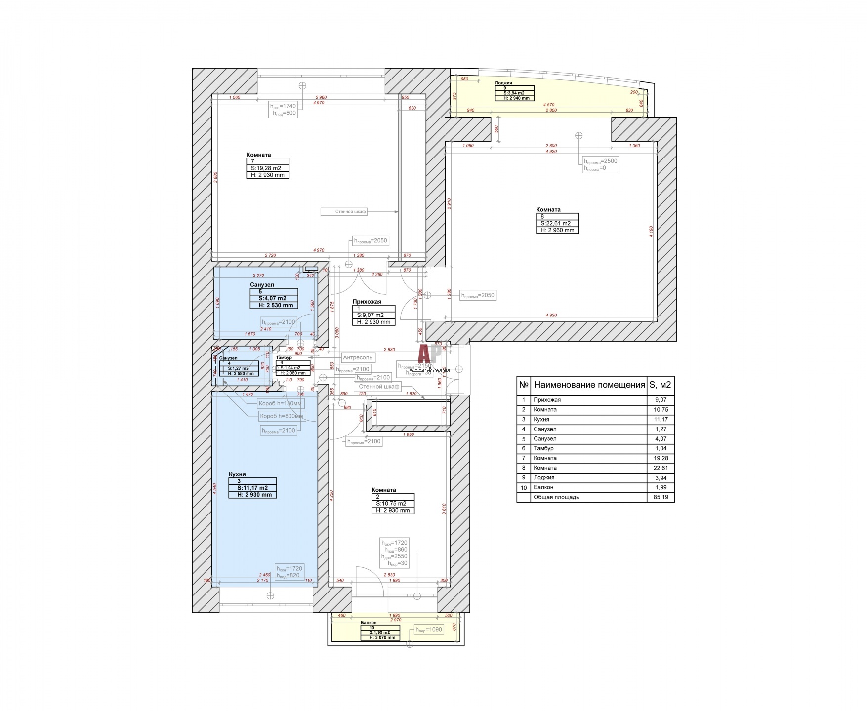 Исходный план квартиры в доме советской постройки. Общая площадь – 86 6 кв. м.