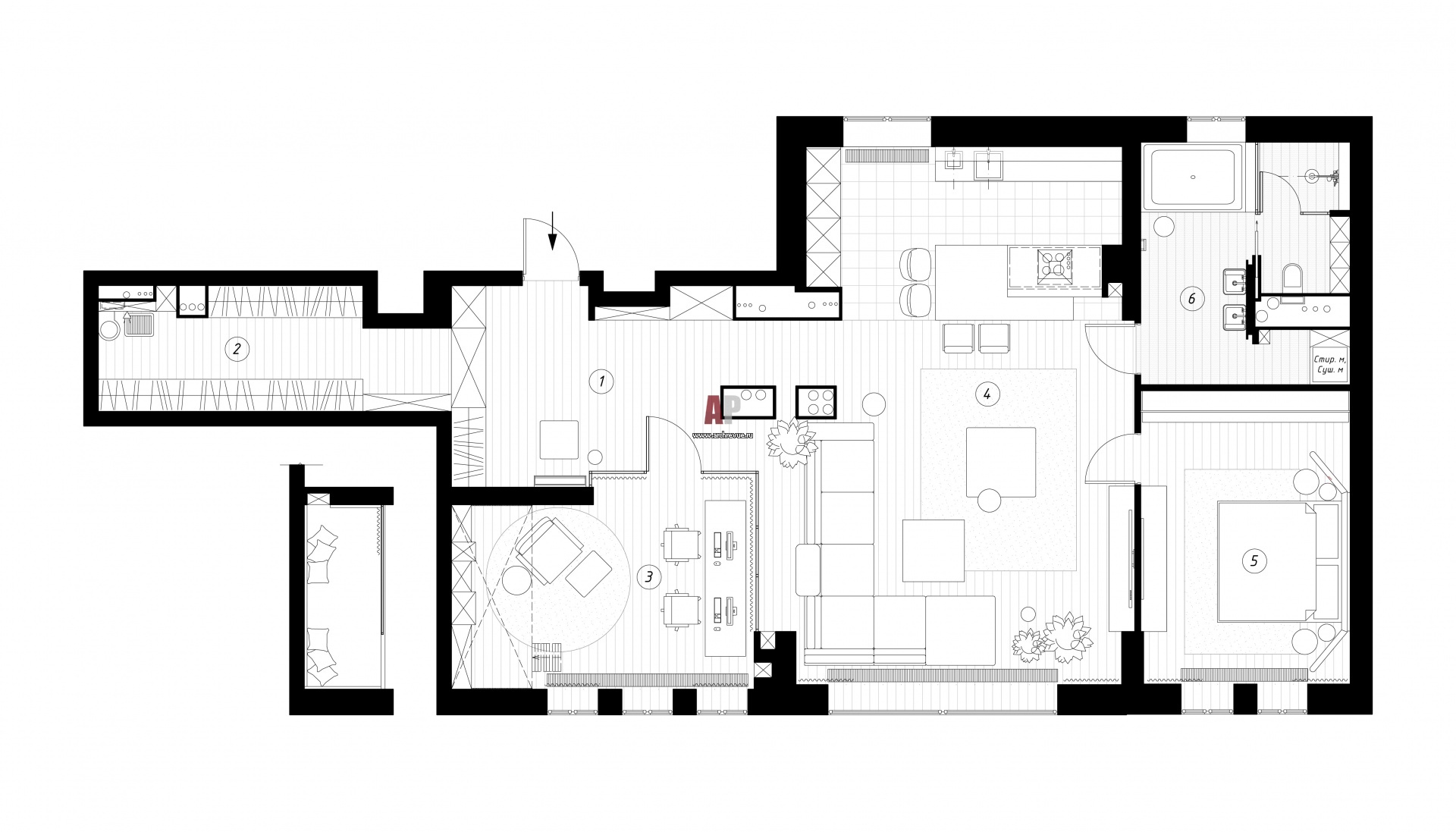 План трехкомнатной квартиры в ЖК Loftec. Общая площадь – 136 кв. м