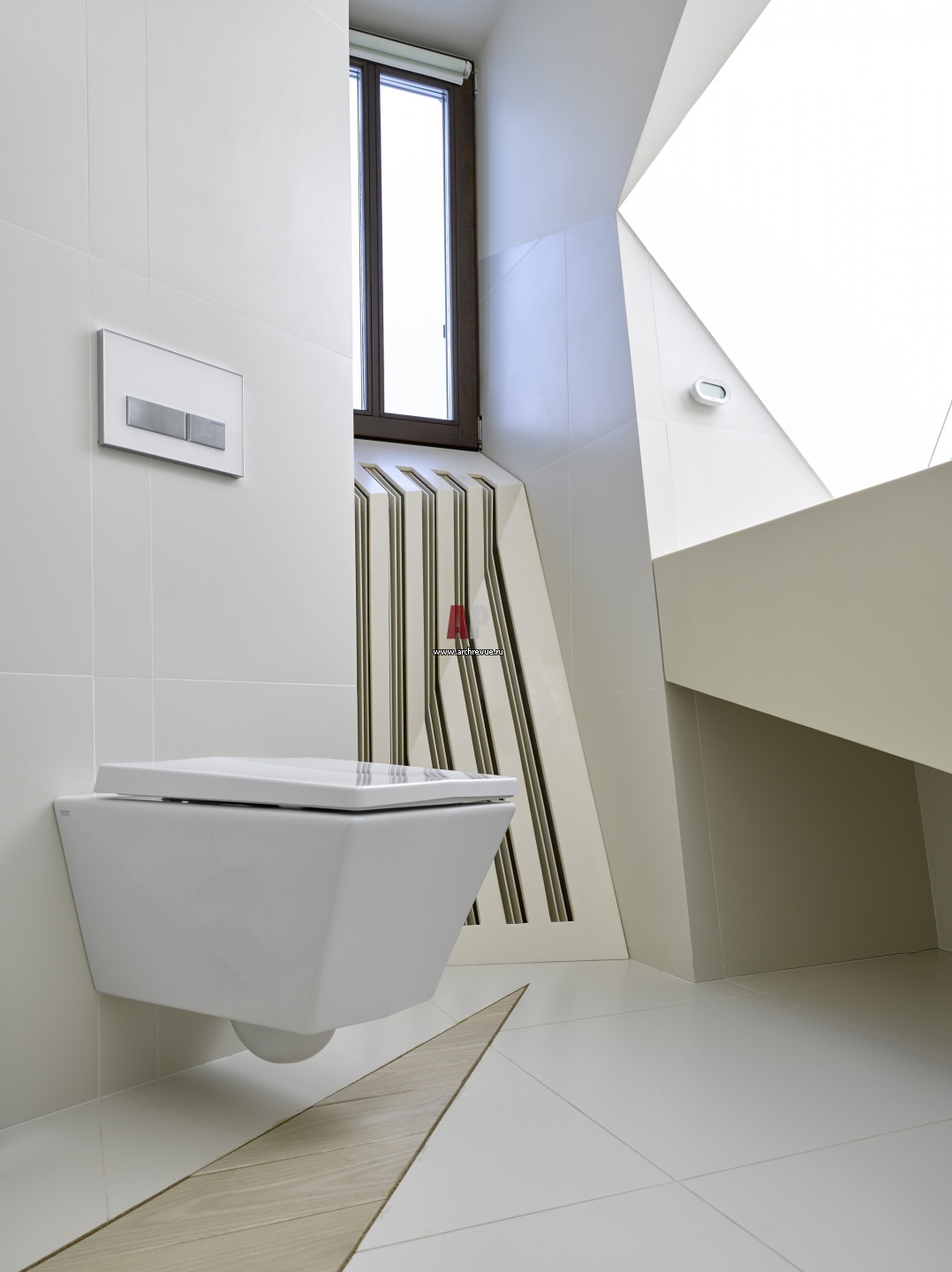 Санузел с авангардным дизайном в мансарде. Унитаз, Olympia, модель Crystal.
