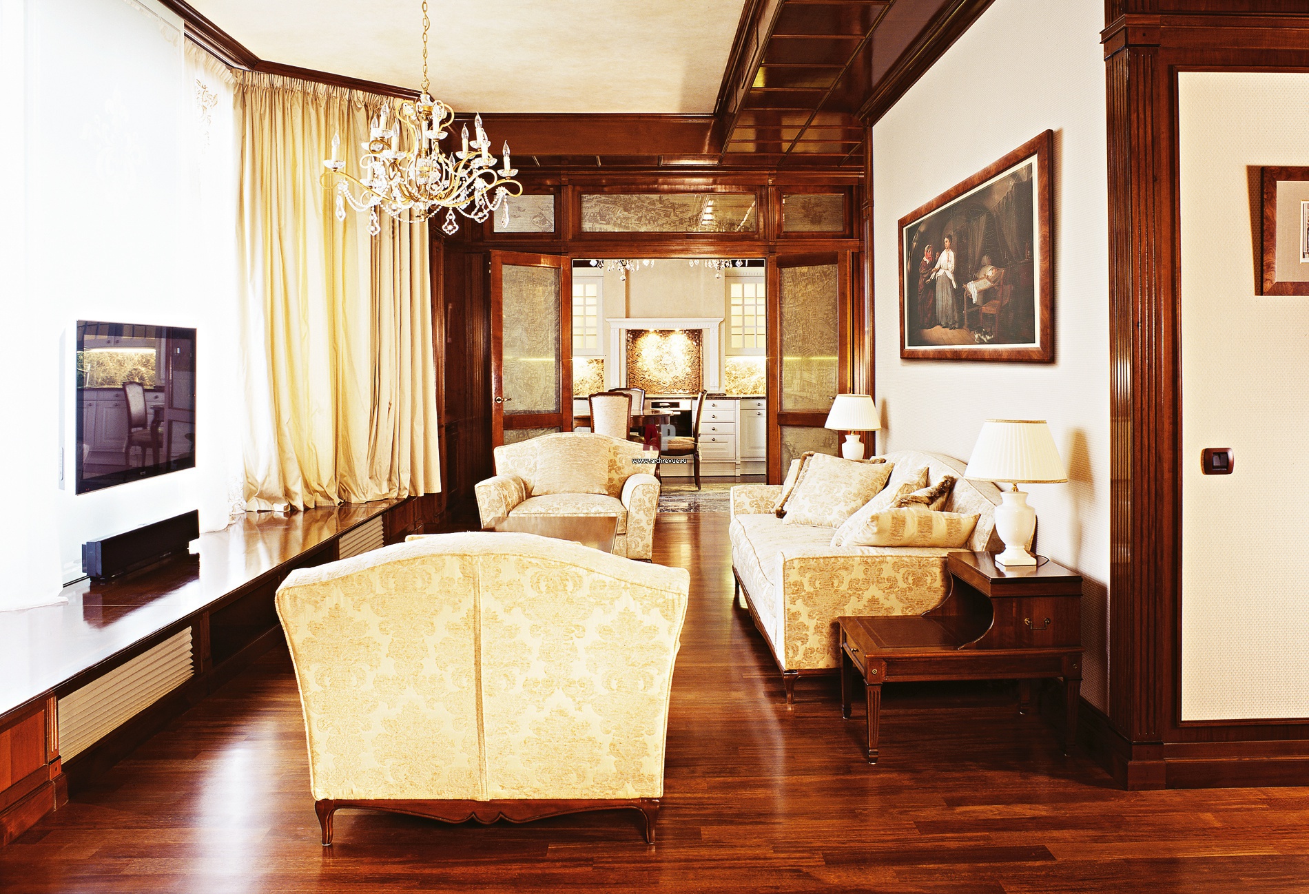 На полах всех жилых помещений паркет из древесины мербау, поставщик «Ковчег-паркет».