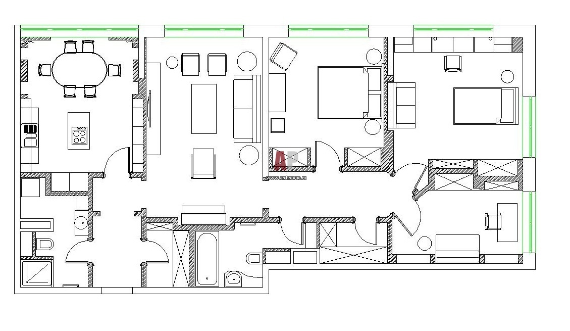 Планировка 4-х комнатной квартиры площадью 120 кв. м.