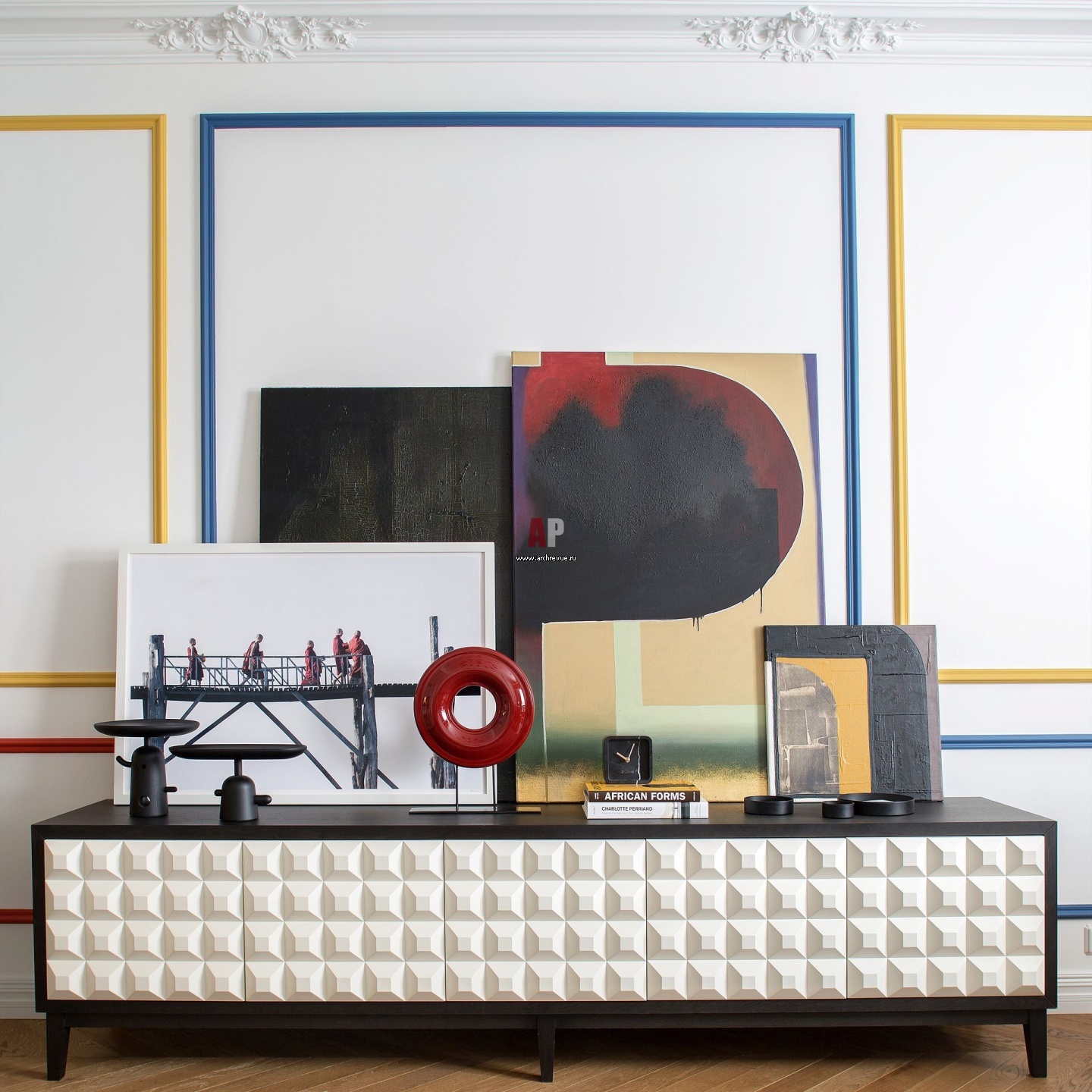 Комод под ТВ сделан на заказ российскими мастерами, The Idea. Живопись – Николай Моргунов, Кирилл Басалаев; артфото.