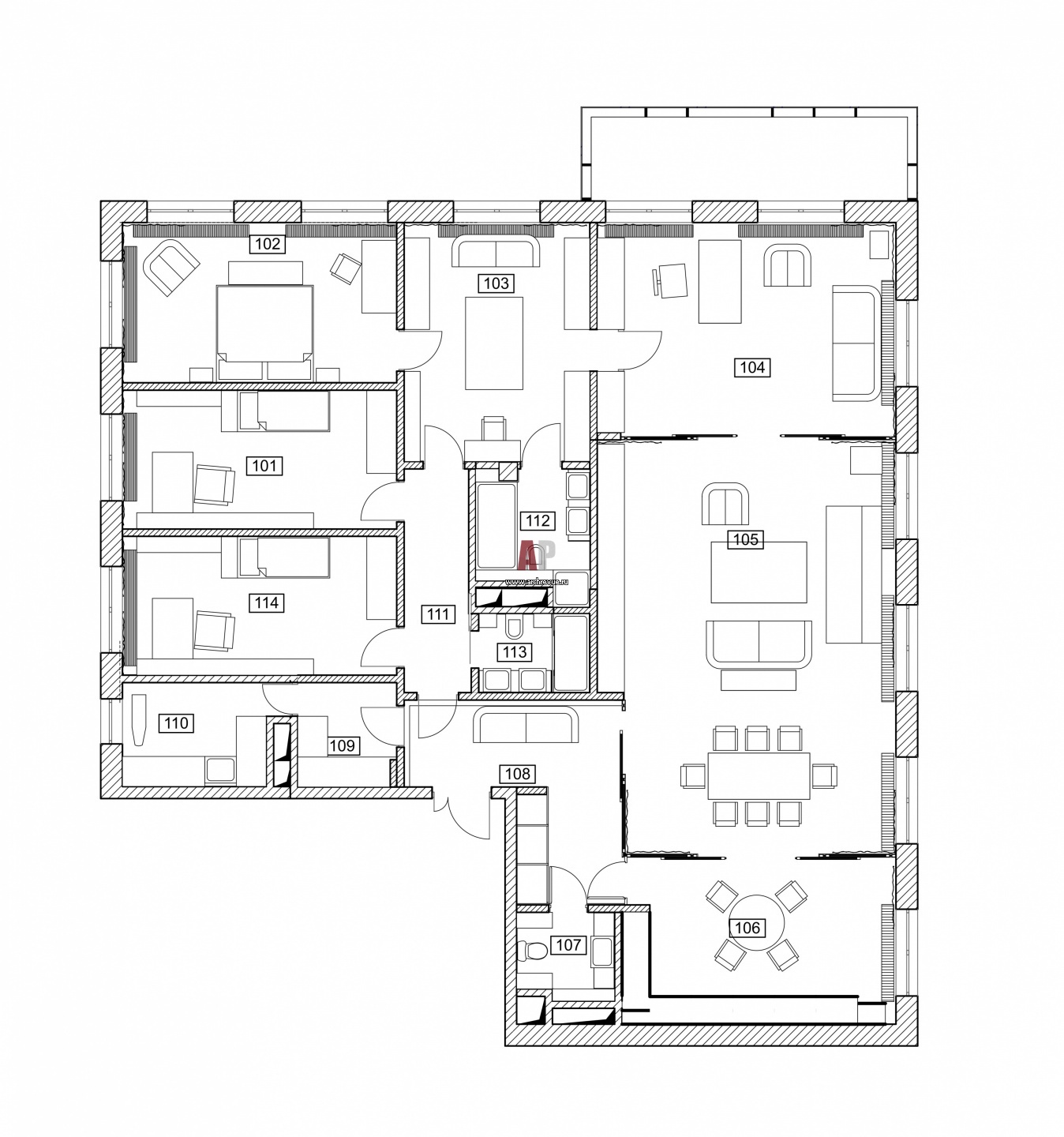 План квартиры с тремя спальнями. Общая площадь – 230 кв. м.