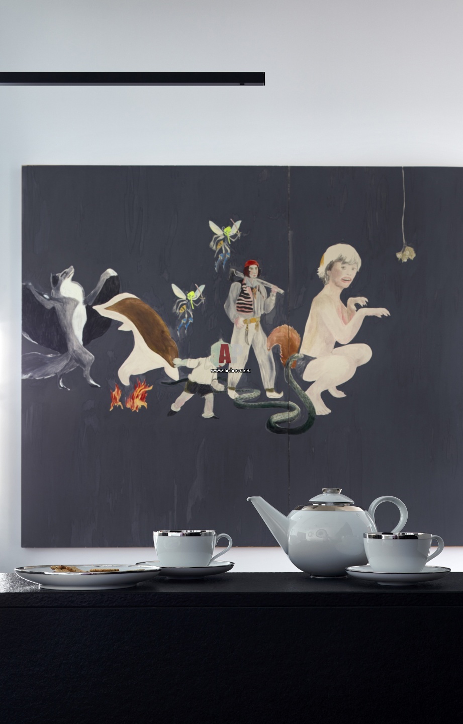 Напротив барной стойки – картина Картина Юлии Заставы «Без названия». Чайный сервиз, Sieger.