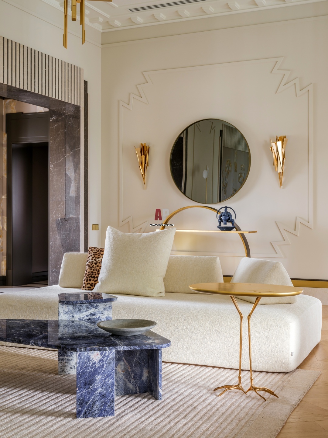 Золотой дом в стиле ар-деко. Интерьер гостиной.