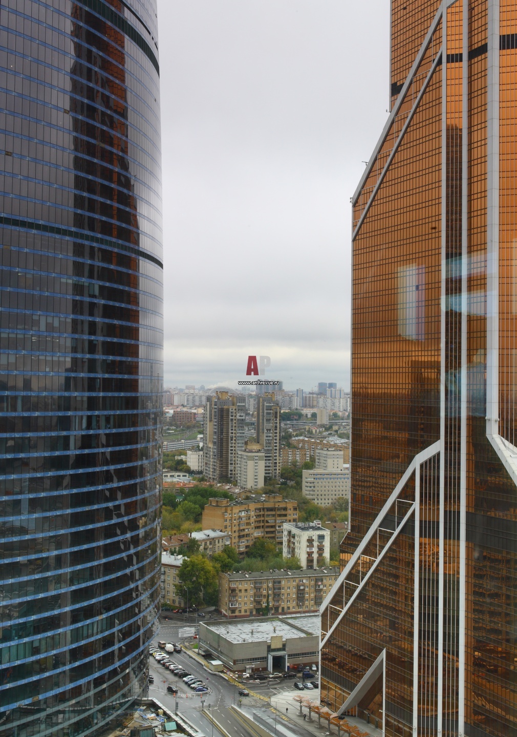 Вид из кона квартиры на синие и охристо-бронзовые небоскребы определил цветовую гамму интерьера.