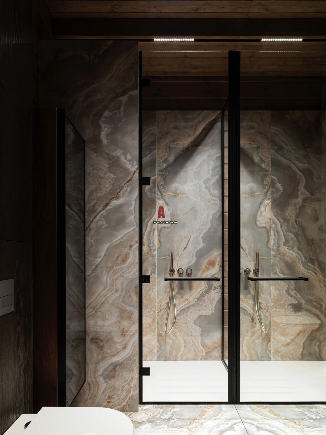 Хозяйская ванная комната. Зона душевой. Панно изготовлено по эскизам. Керамогранит, La Fabbrica Ava, коллекции Malaga.