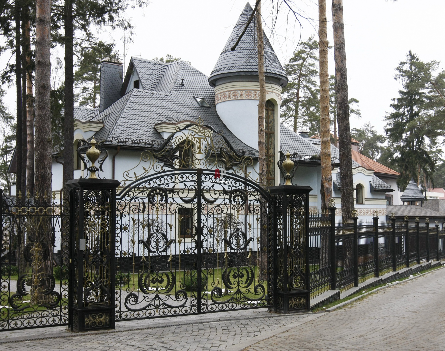 Трехэтажный особняк с башенками и витражами в духе дворцов австро-венгерской империи. Кованые ворота и ограда изготовлены по чертежам архитектора.