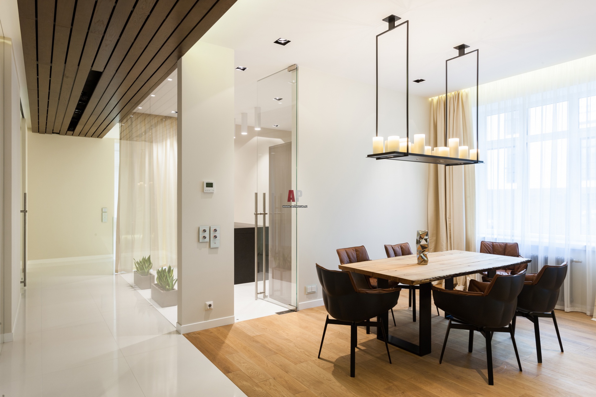 Фото интерьера столовой двухуровневой квартиры в эко стиле