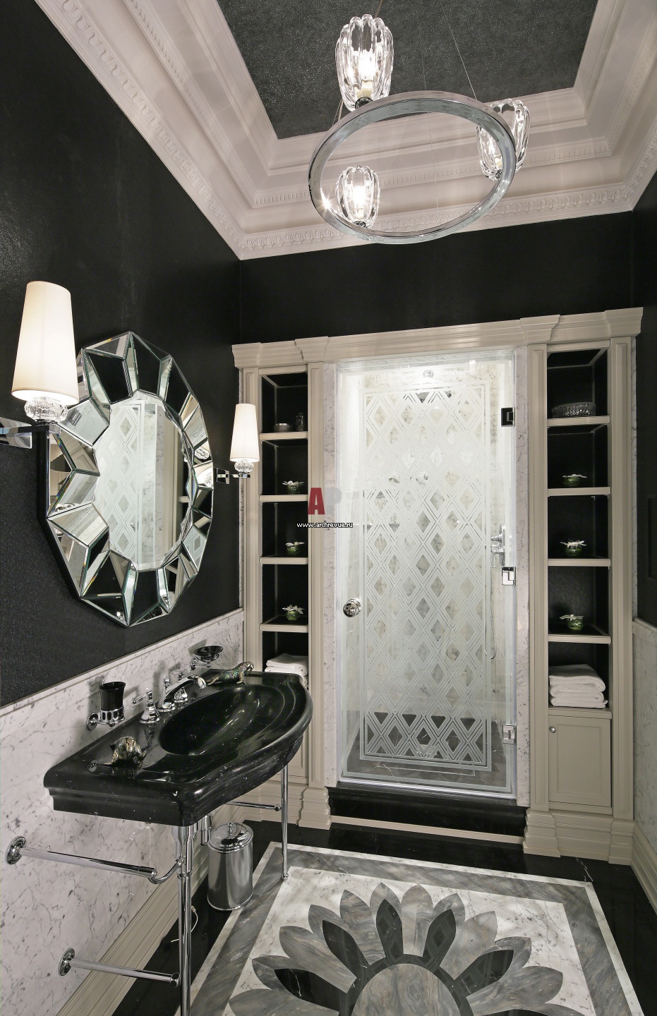 Фото интерьера санузла двухуровневой квартиры в стиле ар-деко