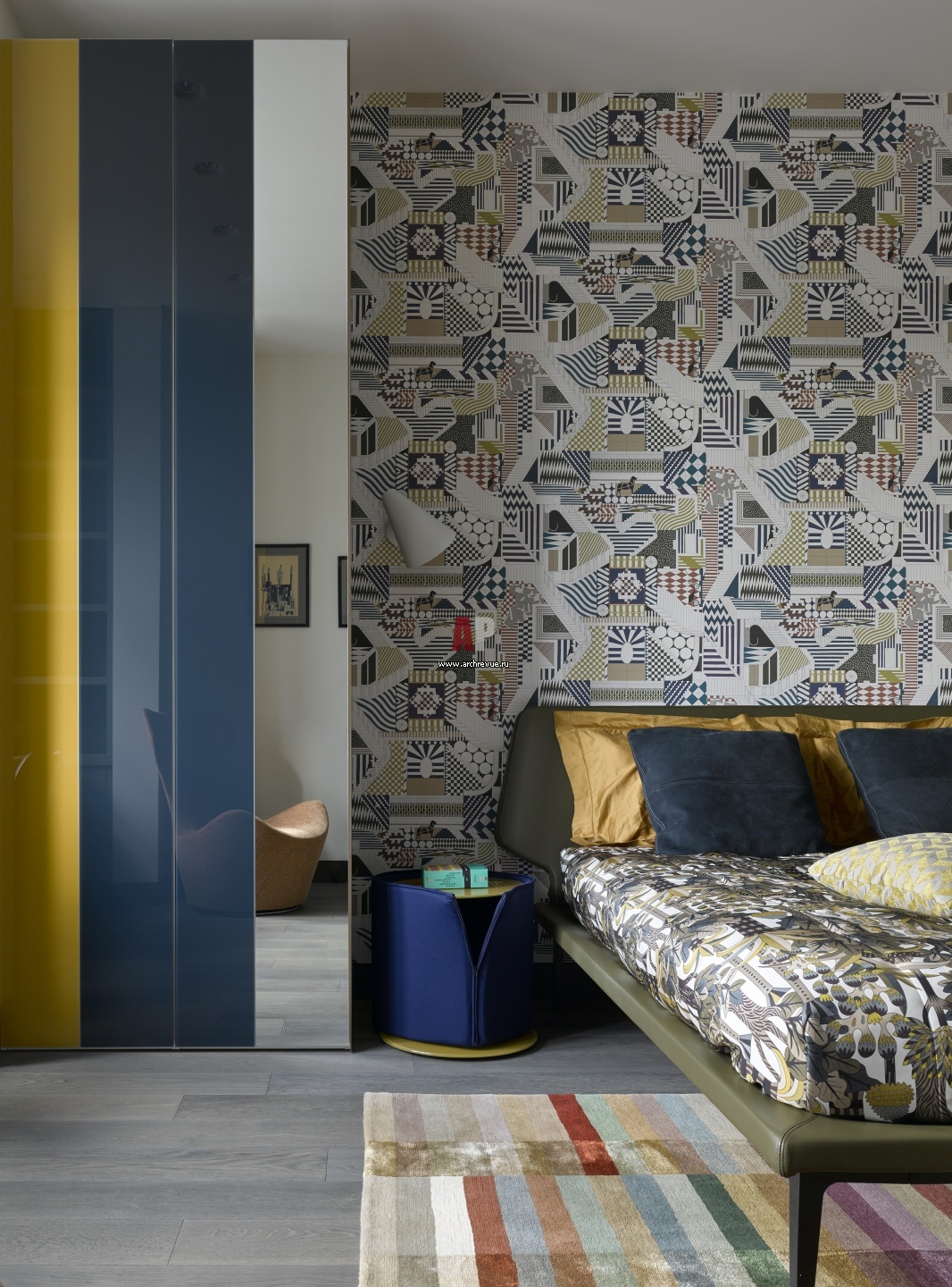 Интерьер гостевой выполнен в стиле фьюжн. Покрывало, Hermes.