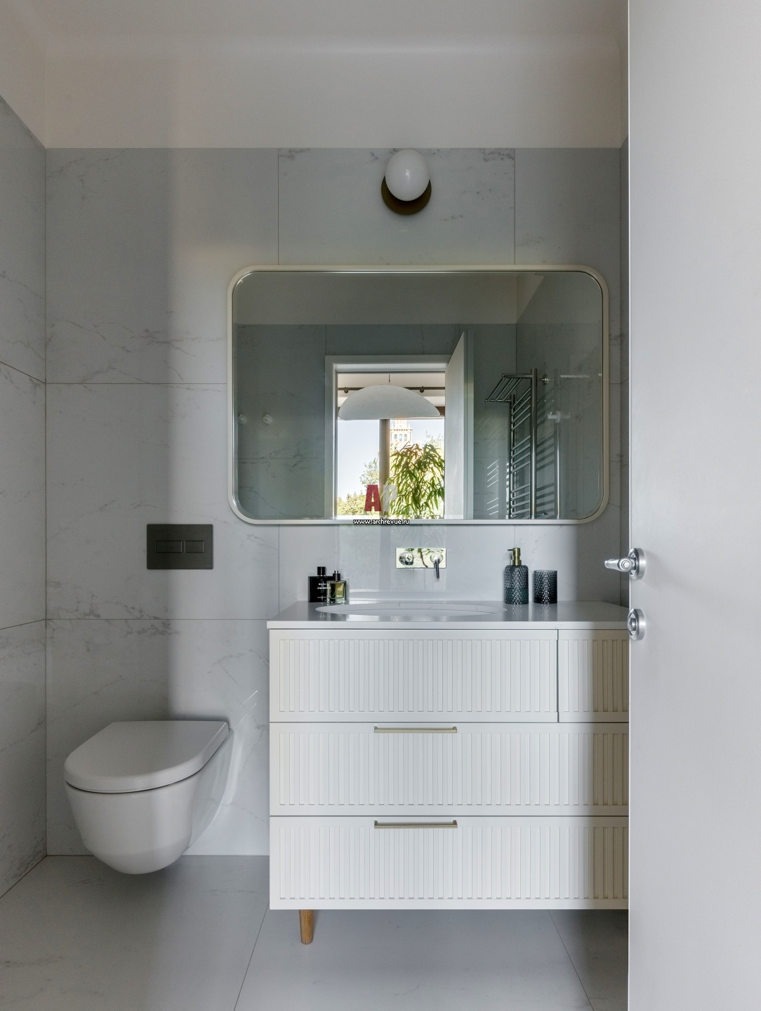 Санузел при спальне. Тумба по эскизам дизайнера. Бра, Nuura. Раковина, Villeroy & Boch.