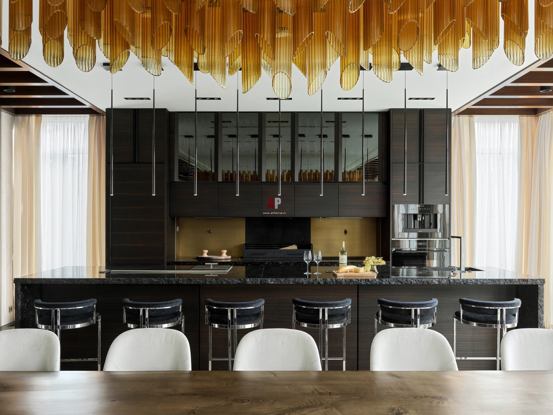 Эпатажный гостевой дом для ивентов и приемов. Интерьер кухни.