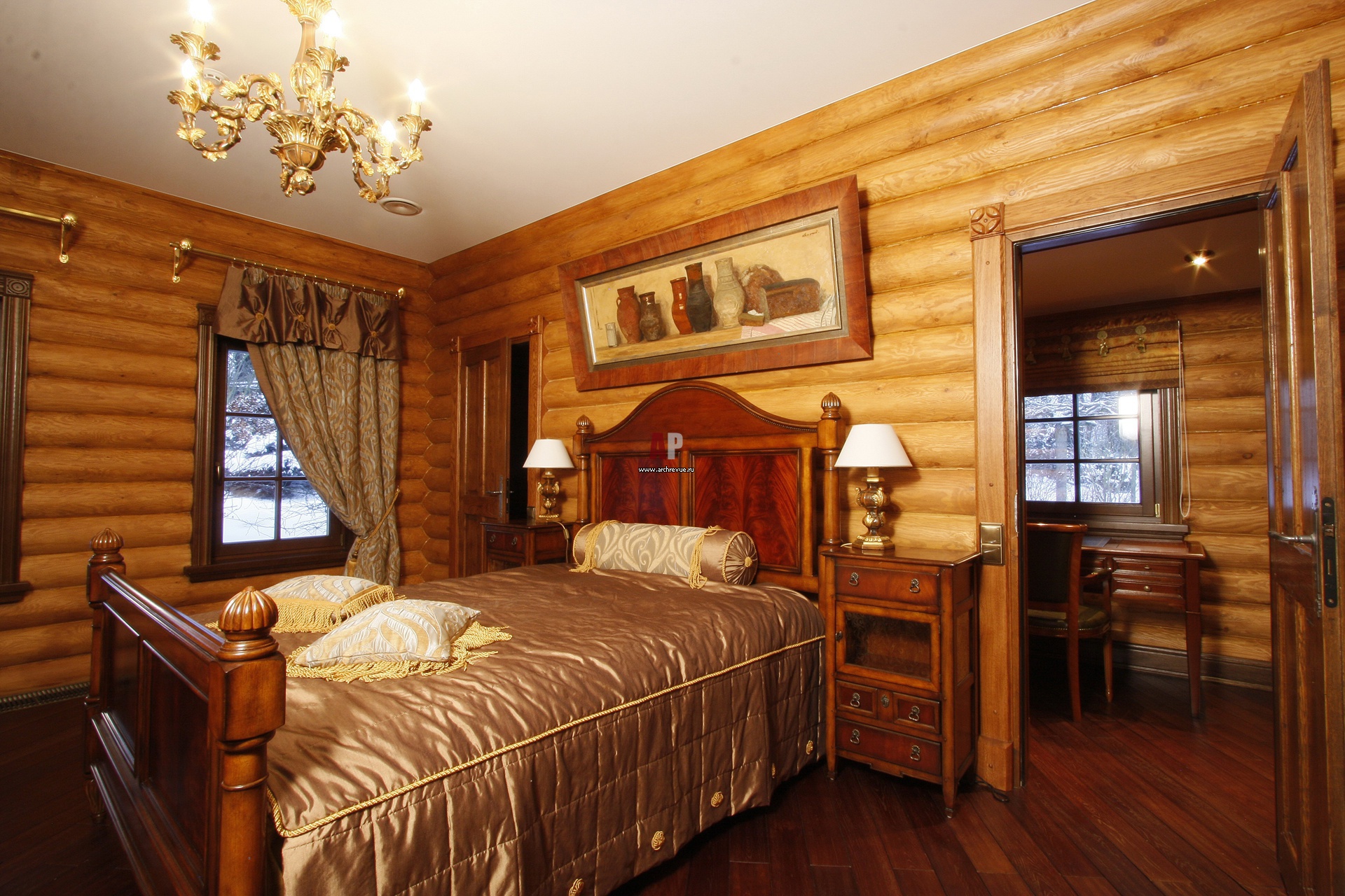 Фото спальни гостевого деревянного дома
