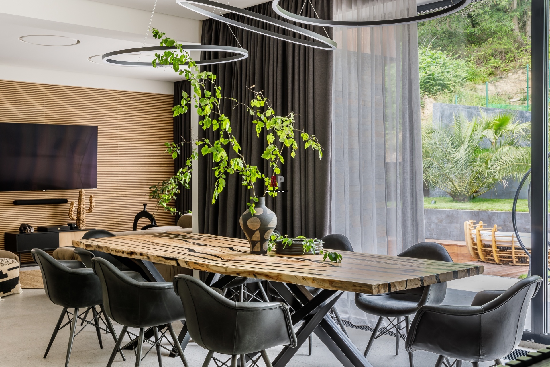 Современный дом для летнего отдыха в Сочи. Интерьер столовой.