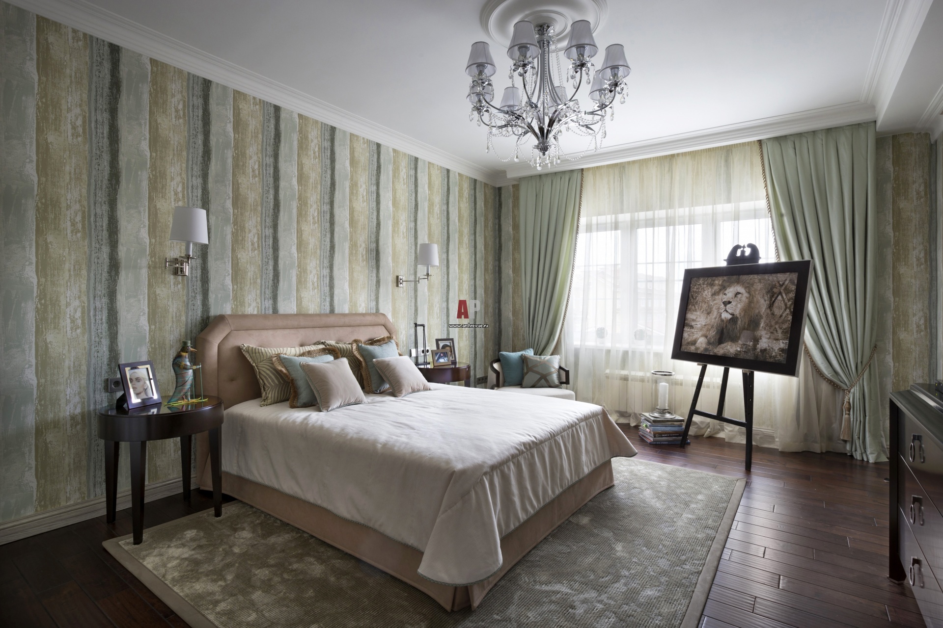 Фото интерьера детской. Стены оформлены обоями с эффектом акварельного рисунка. На полу – массивная доска их ореха с рельефом.