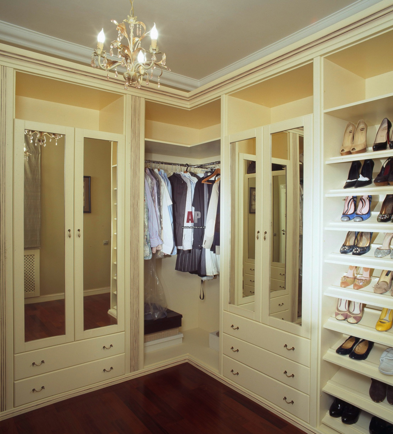 Фото интерьера гардеробной трехэтажного дома в классическом стиле