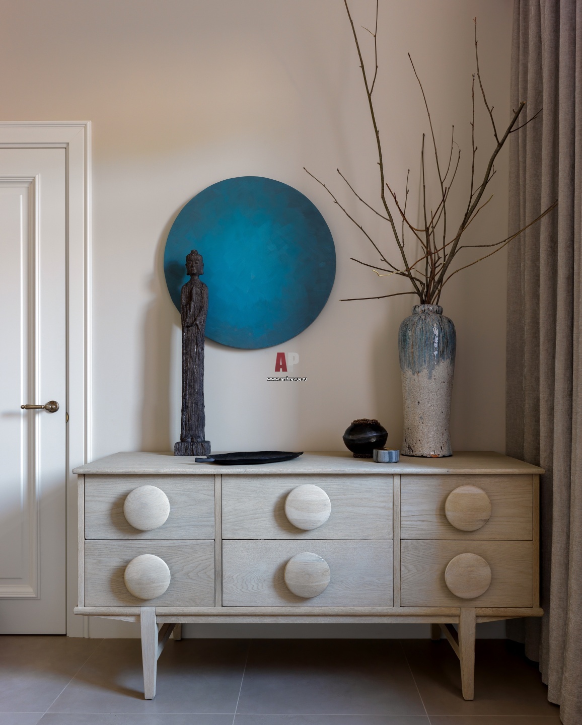 Интерьер дома спортсмена, чемпиона по фристайл-мотокроссу Алексея Колесникова. Прихожая. Комод, выбеленный дуб.