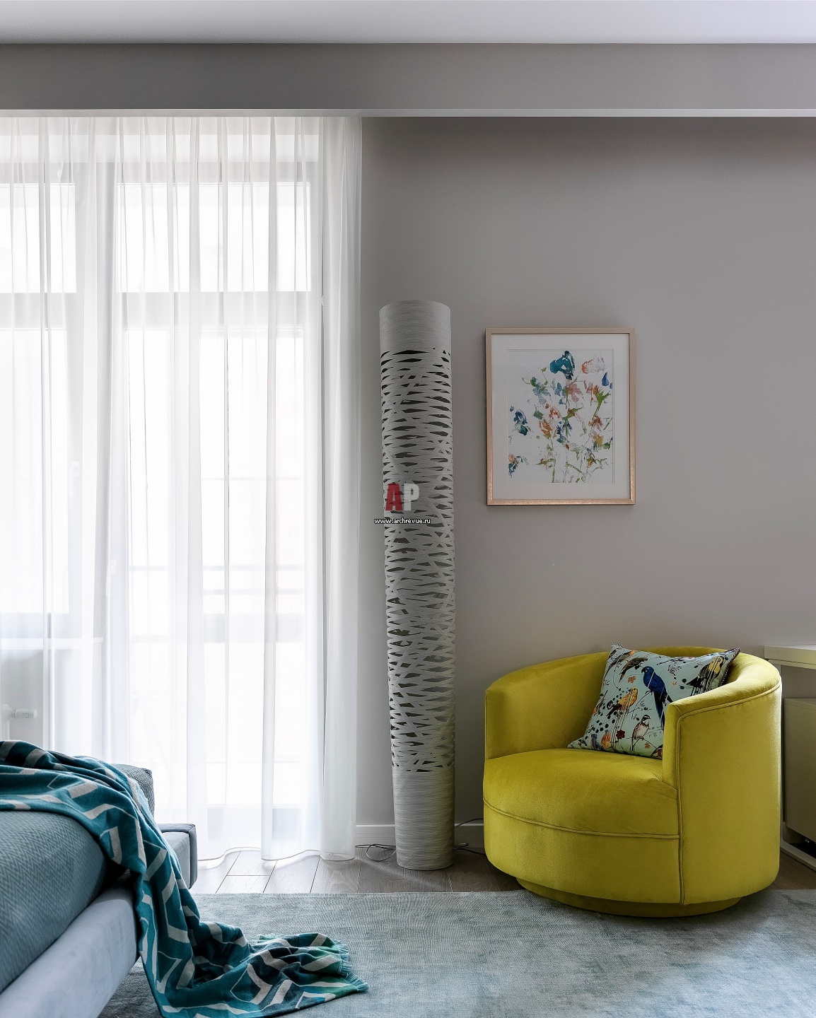 Интерьер детской. Торшер, Foscarini. Кресло горчичного цвета, Loffilab.