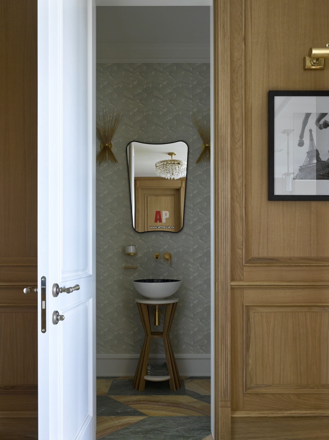Интерьер гостевого санузла. Обои, Pierre Frey.