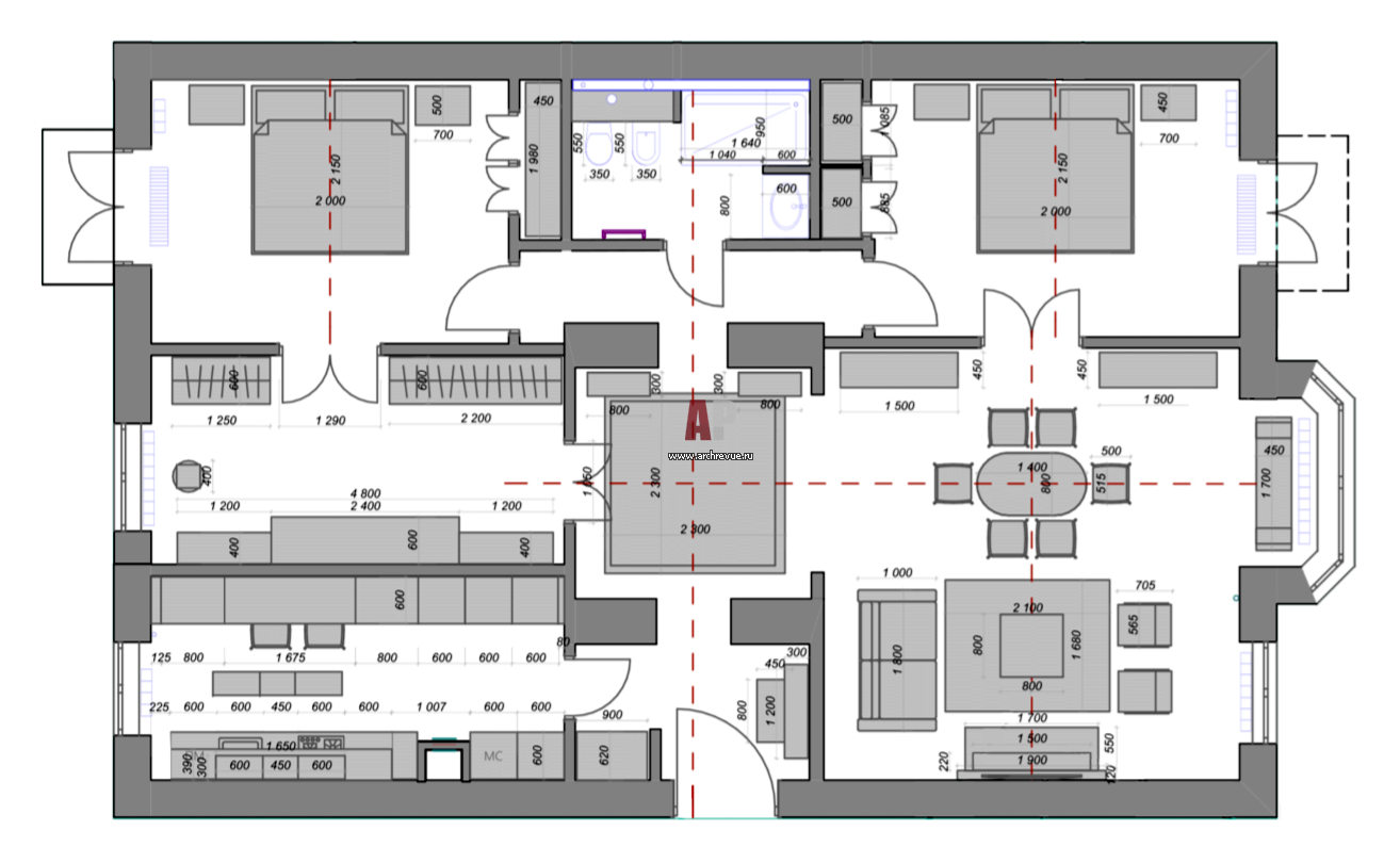 План трехкомнатной квартиры в сталинском доме. Общая площадь – 116 кв. м.