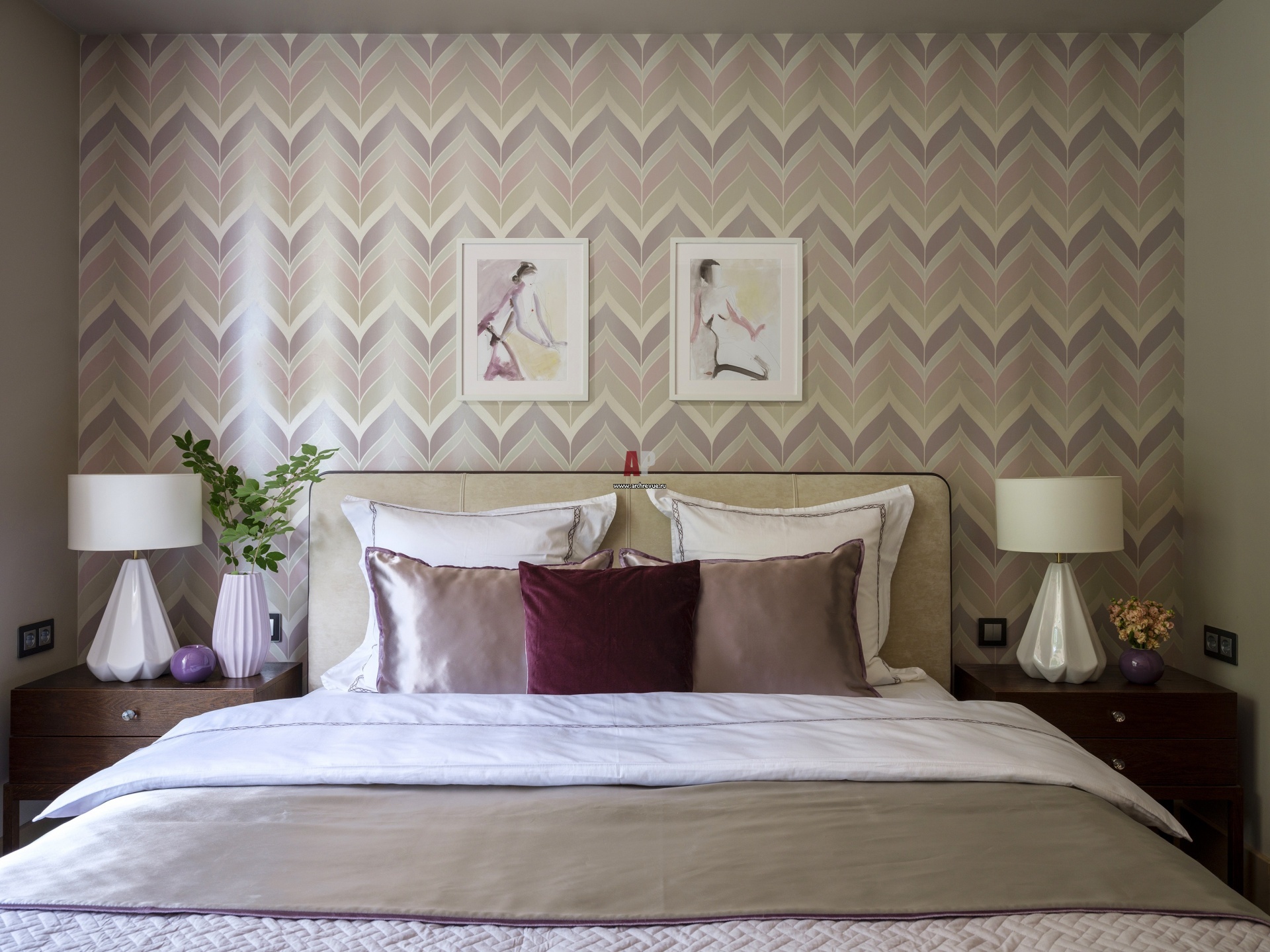 Хозяйская спальня. Обои, York Wallcoverings, серия Modern Lux. Настольные лампы с керамическим основанием, Farol.