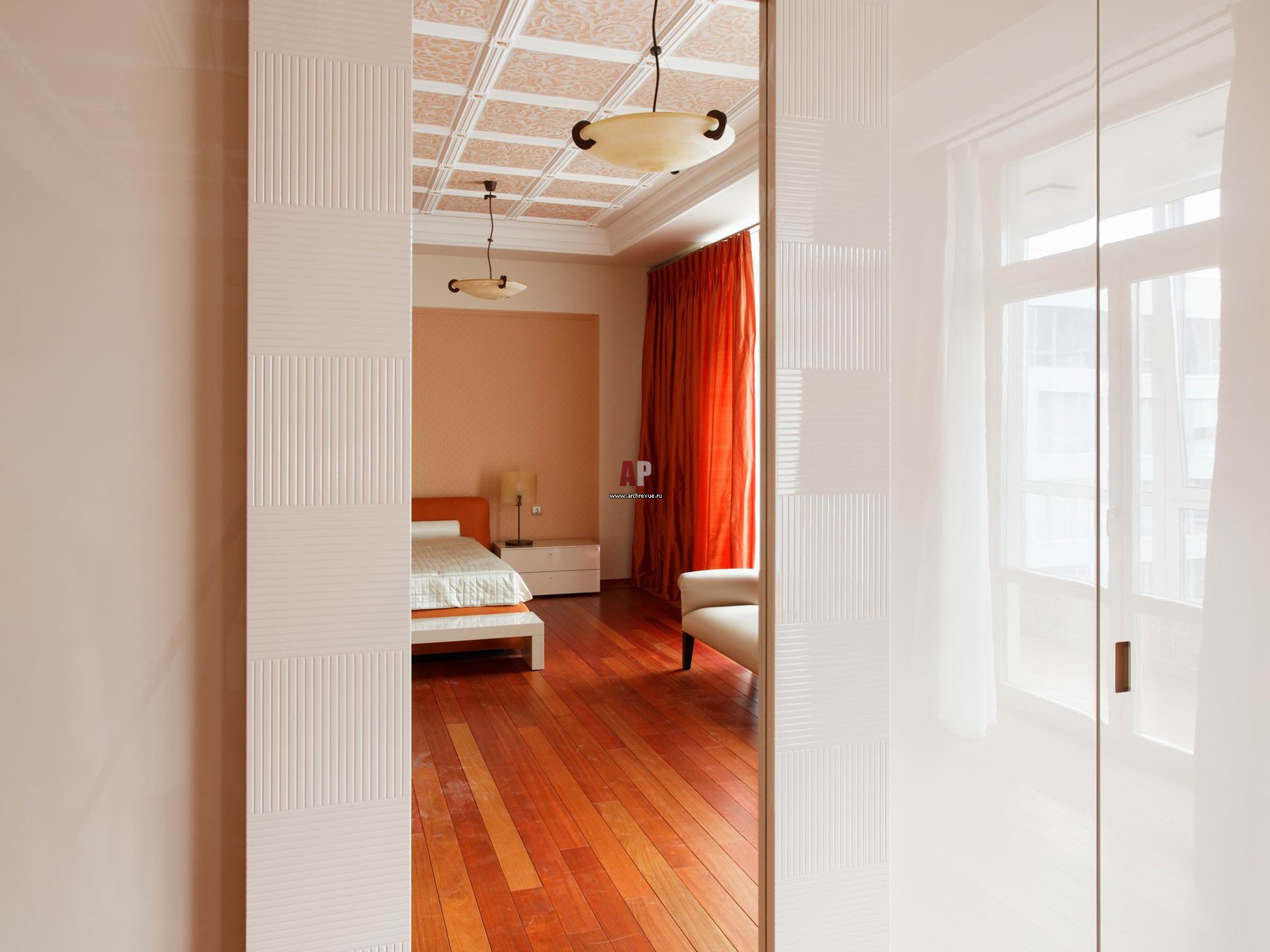 Встроенный шкаф Besana в спальне утоплен в волнообразную стену, как в нишу.