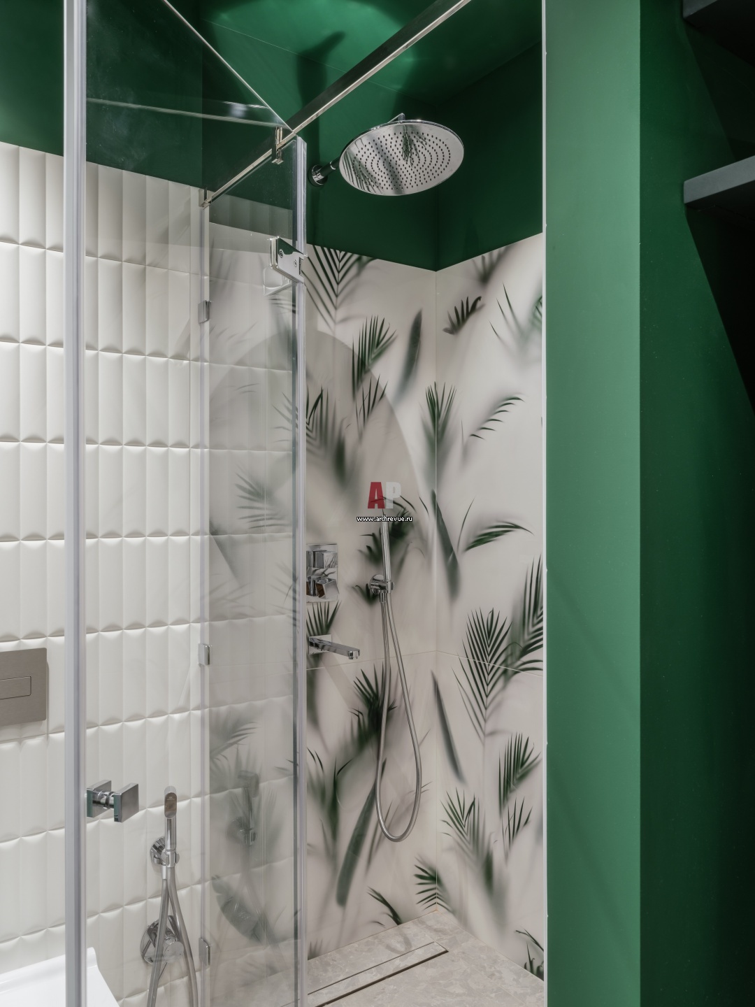 Мужской санузел. Душевая напоминает открытый балийский душ в тропических зарослях.
