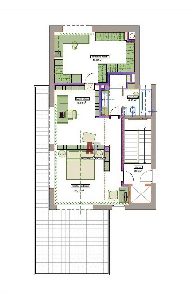 План третьего этажа дома для постоянного проживания большой семьи в Барселоне. Общая площадь – 370 кв. м.
