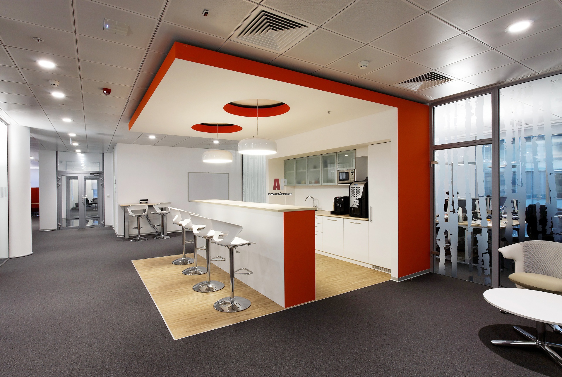 Офис компании «Сименс». Дизайн-проект кофе-поинта на рабочем этаже.