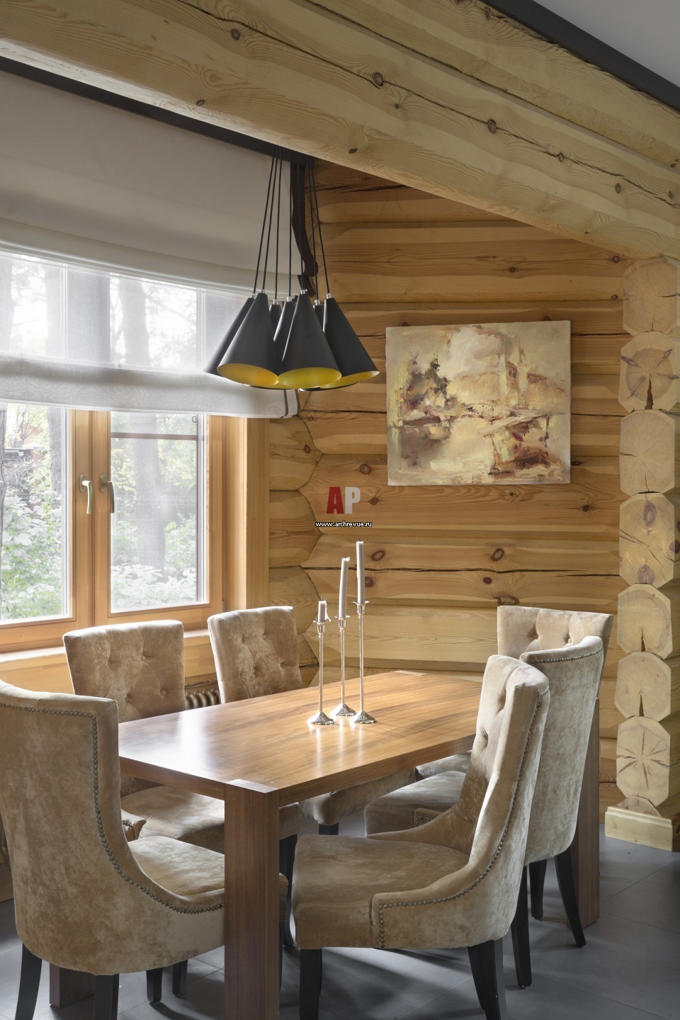 Столовая группа размещена в эркере и залита солнечным светом. Светильник, Diesel with Foscarini.