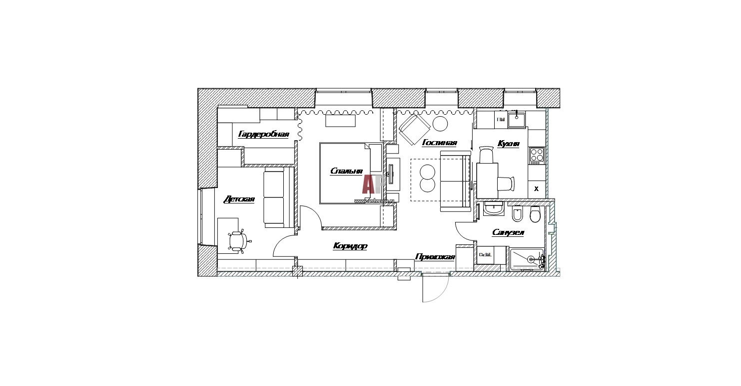 Перепланировка маленькой 3-х комнатной квартиры в старом жилом фонде.