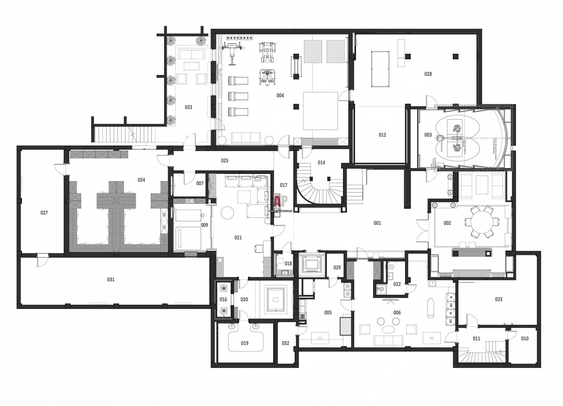 План подземного этажа двухэтажной виллы. Общая площадь – 1728 кв. м.