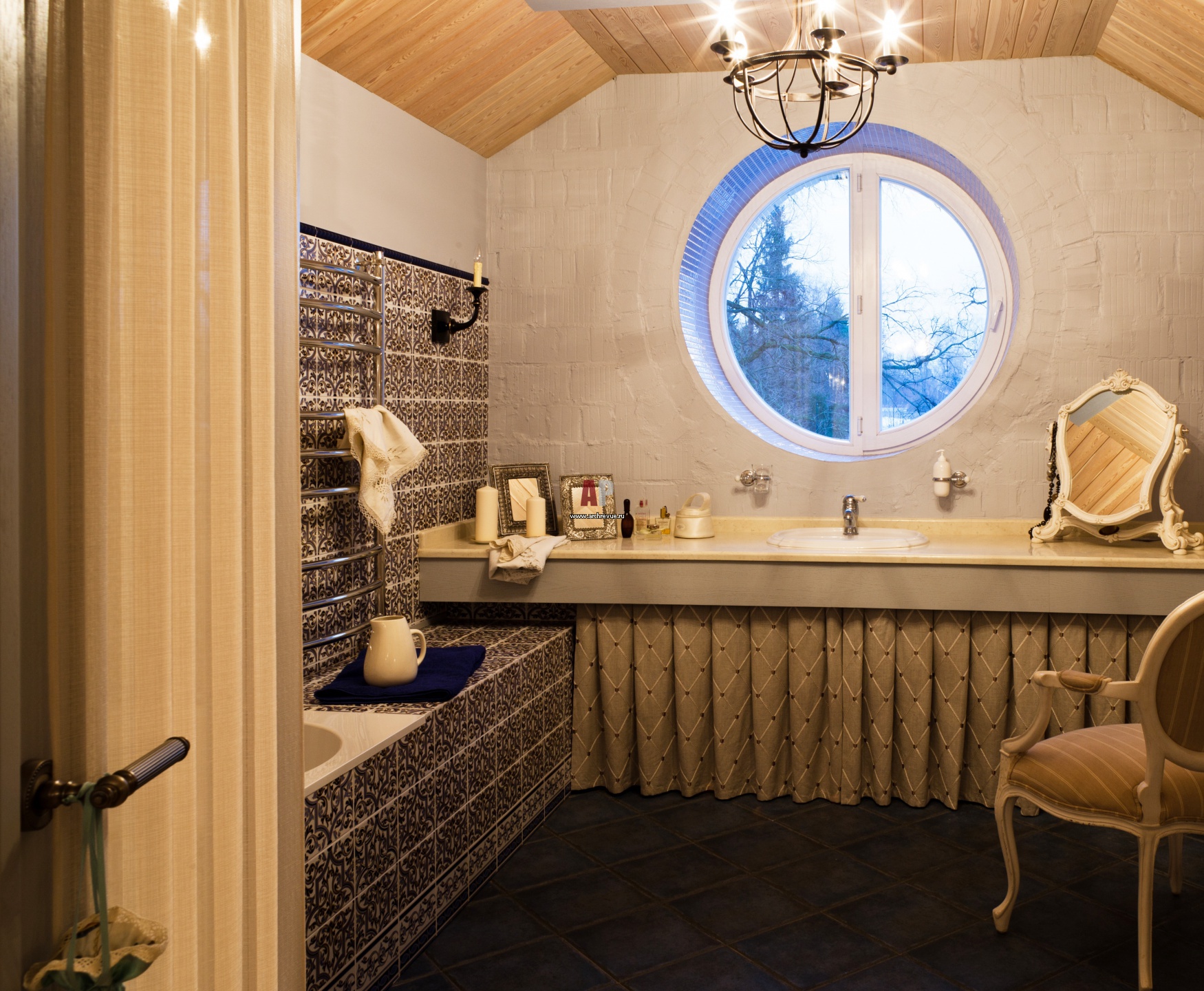 Ванная комната дочери. Сантехника, Villeroy & Boch, Twyford. Кованая люстра, Hans Koegl Wohnlicht.