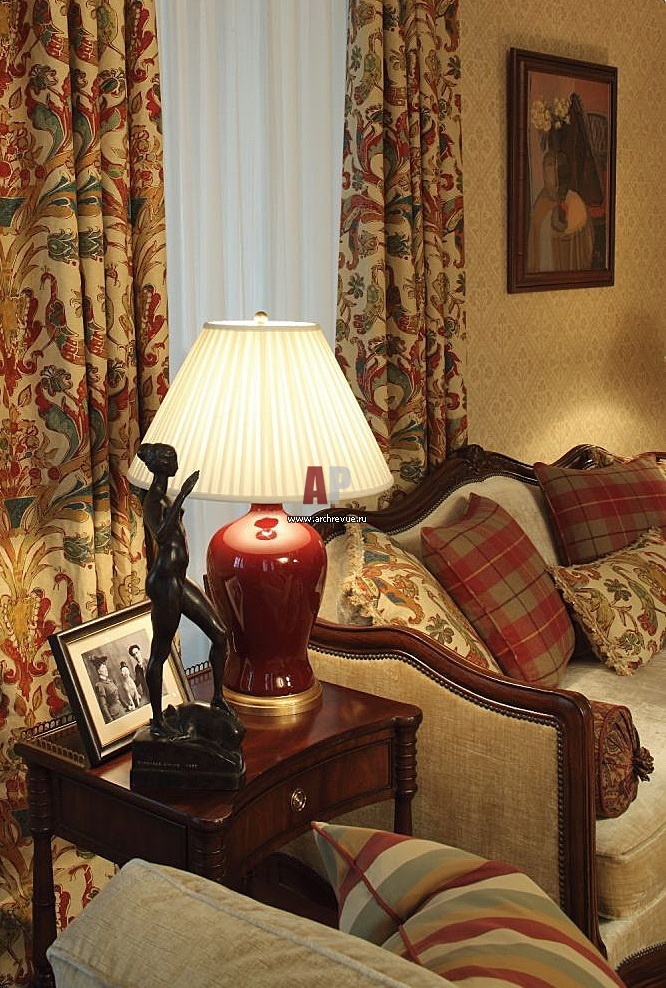 Зона отдыха в гостиной. Диваны, Beaumont & Fletcher и Drexel Heritage. Настольная лампа, Ralph Lauren.