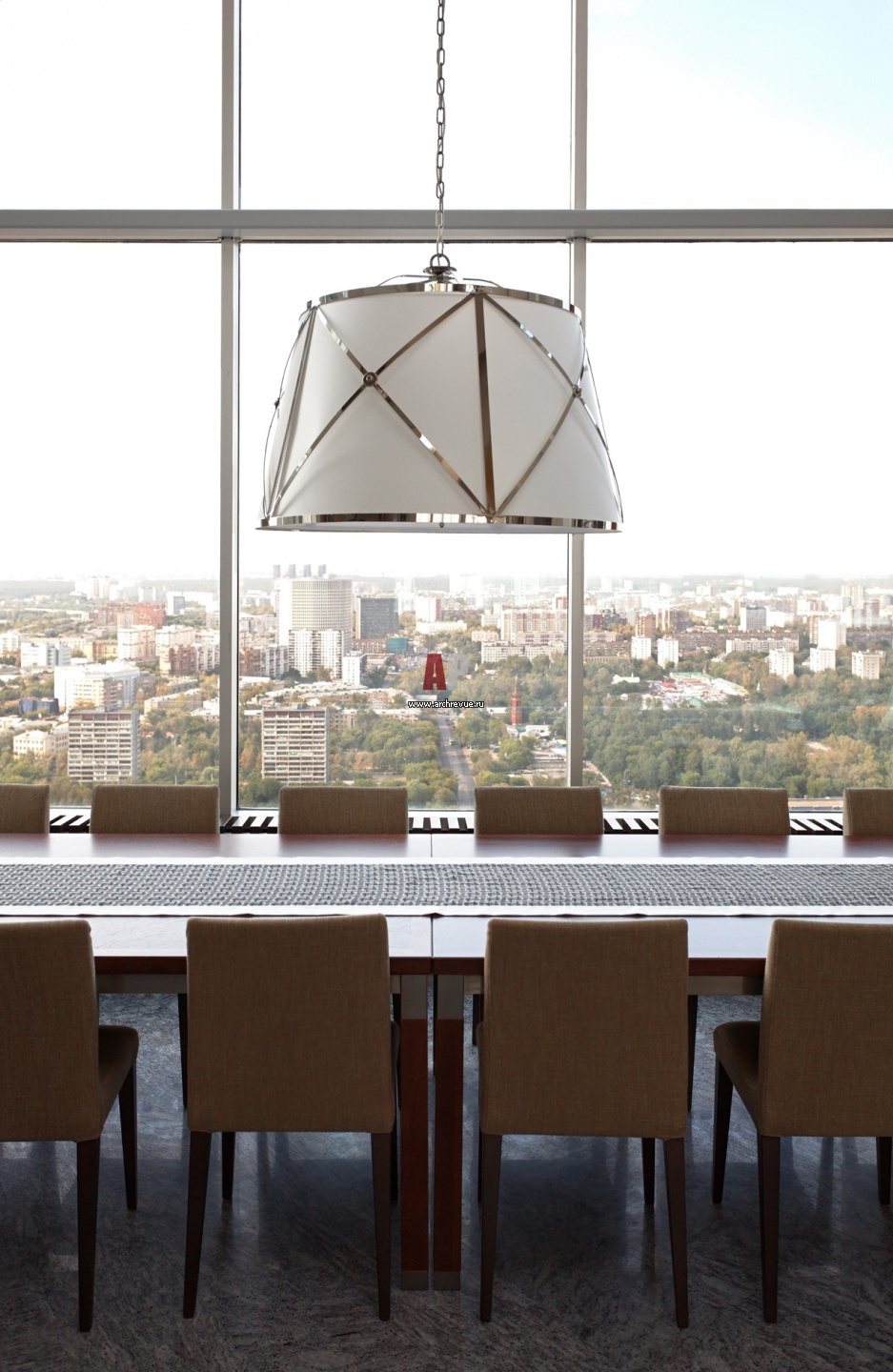 Стол сделан на заказ российскими мастерами. Светильник заказан на итальянской фабрике Arizzi.