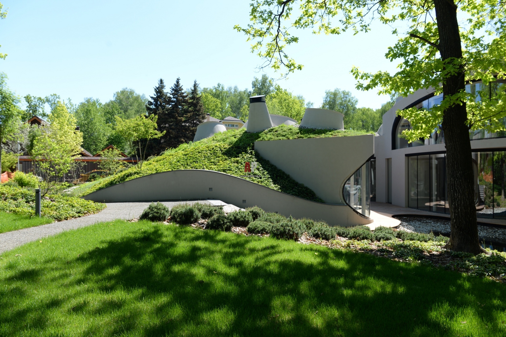 Бионический дом с зеленой кровлей