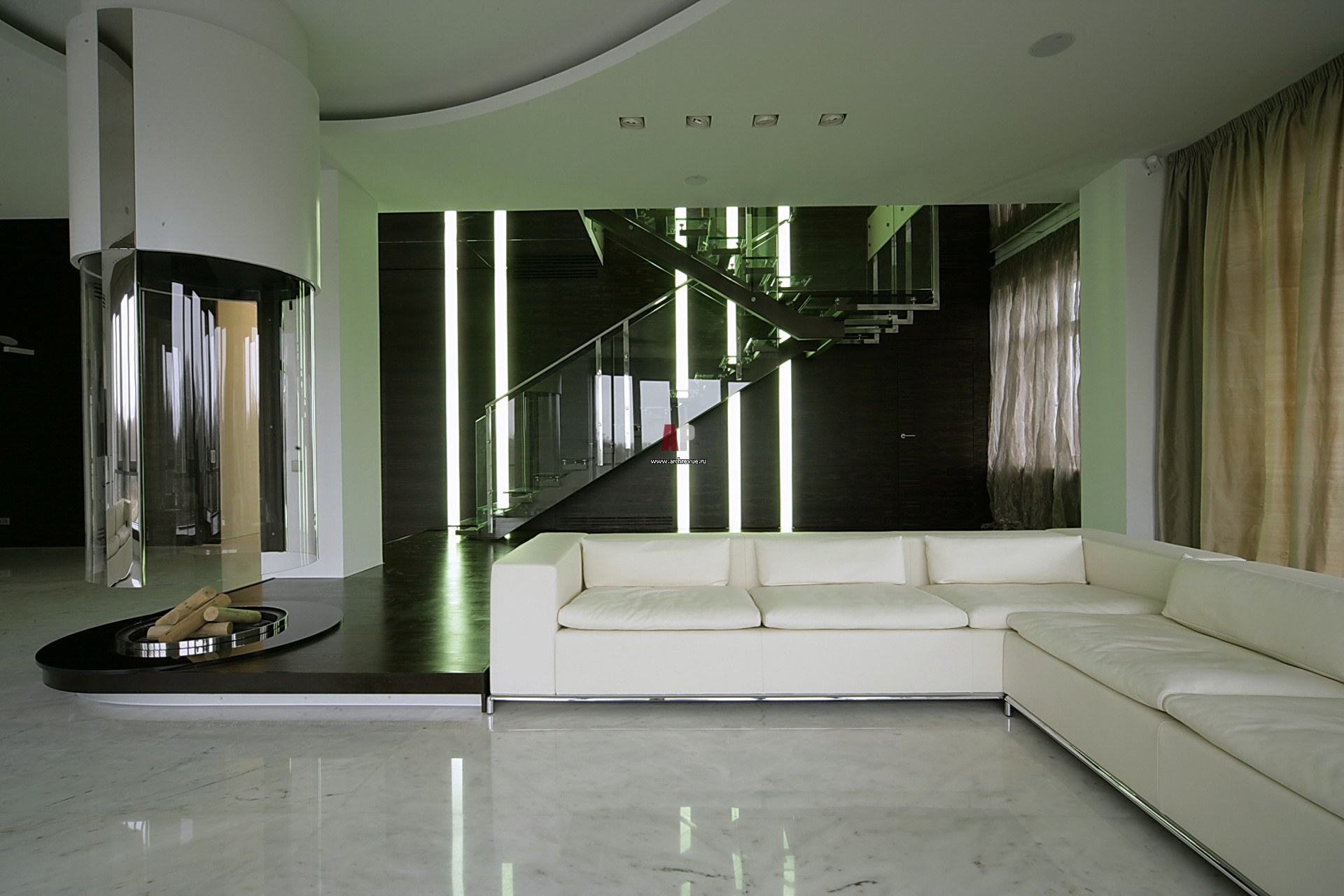 Фото интерьера зоны отдыха двухуровневой квартиры в стиле минимализм