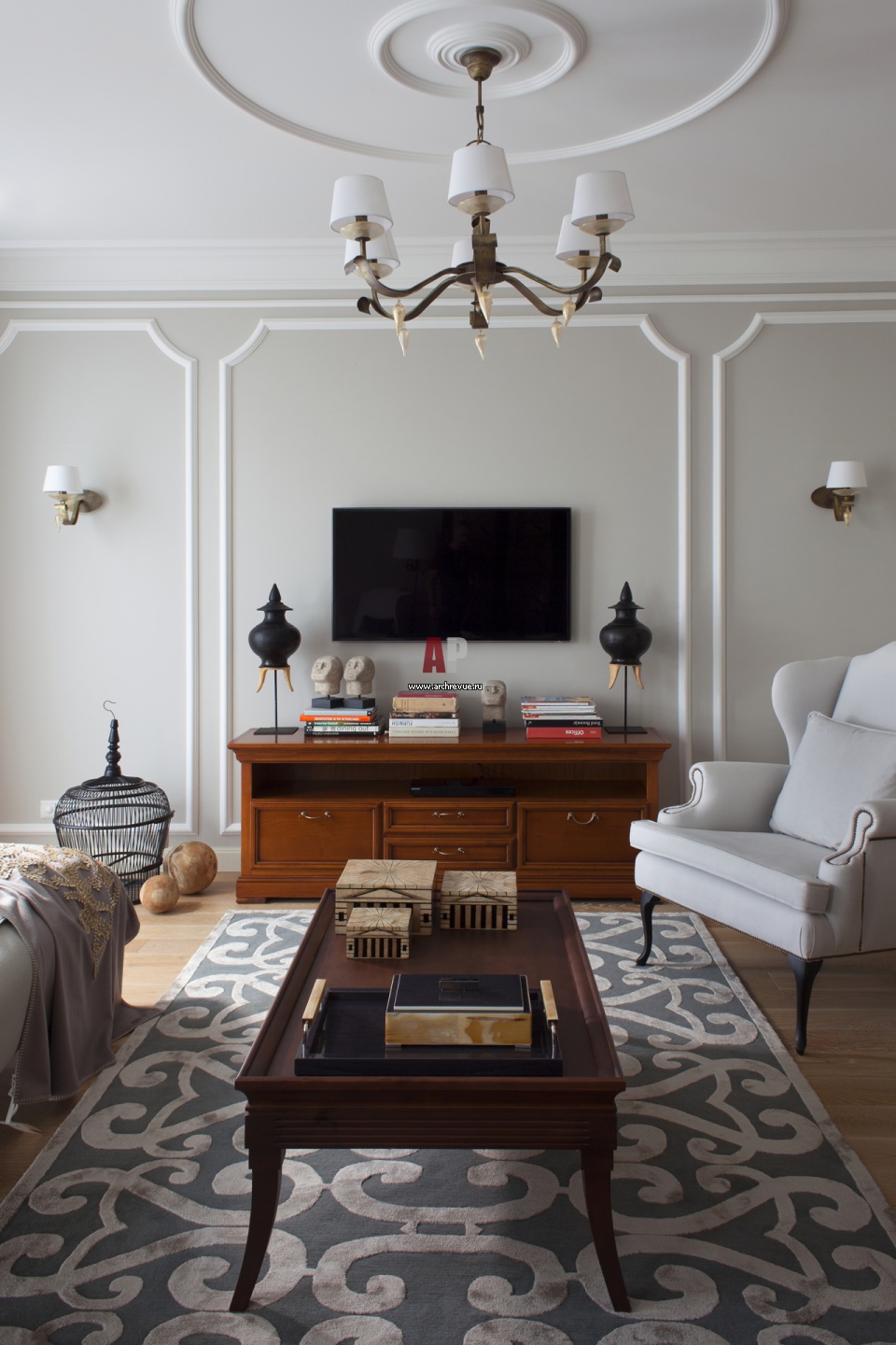 Дизайн интерьера гостиной в стиле Прованс. Мебель выбиралась с имитацией потертостей и ощущением старины.